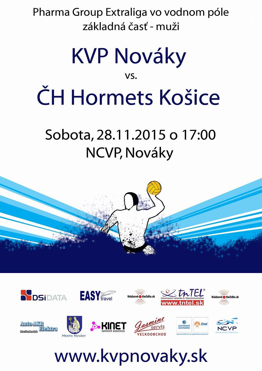 26.11.2015 V sobotu 28.11.2015 o 17:00 v Národnom centre vodného póla vás pozývame na zápas 8.kola Pharma Group Extraligy kde sa stretnú KVP Nováky s ČH Hornets Košice Celý článok
